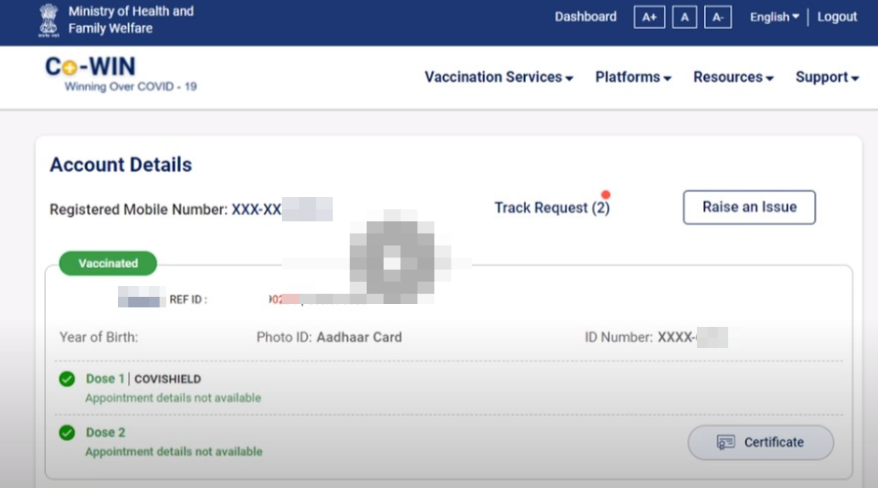 - इसके बाद कोविन पोर्टल का डैशबोर्ड दिखाई देता है, जहाँ से आप सर्टिफिकेट डाउनलोड कर सकते है |