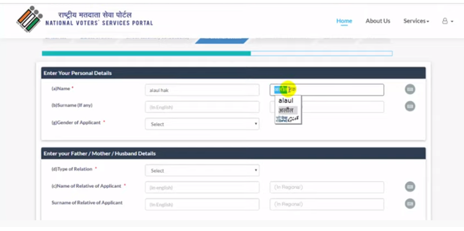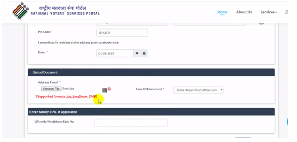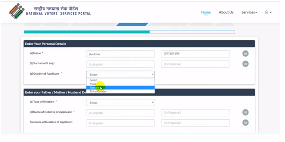 - आपके माता /पिता /पति (Father’s/Mother’s/ Husband) में जिसका वोटर कार्ड बन चुका हो, उनसे सम्बंधित जानकारी भरनी होगी |