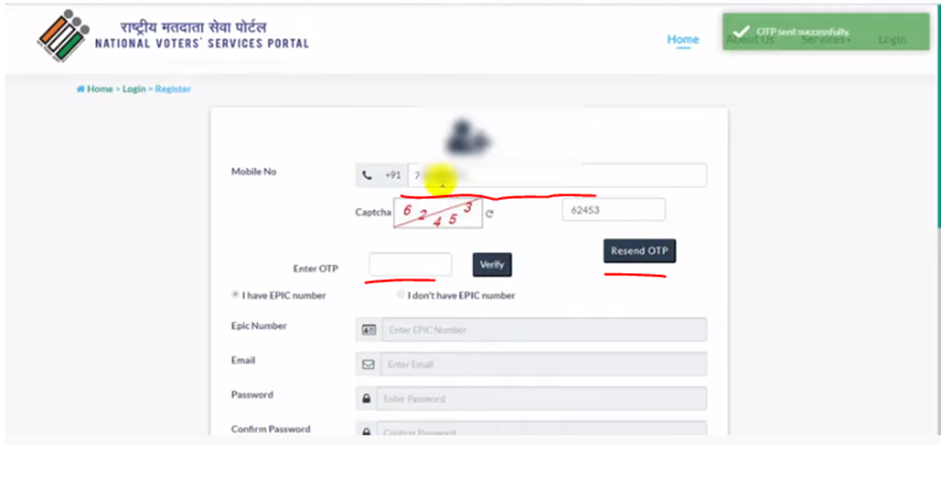 - अब अपना मोबाइल नम्बर रजिस्टर्ड करना होगा जिसपर ओटिपी आता है |