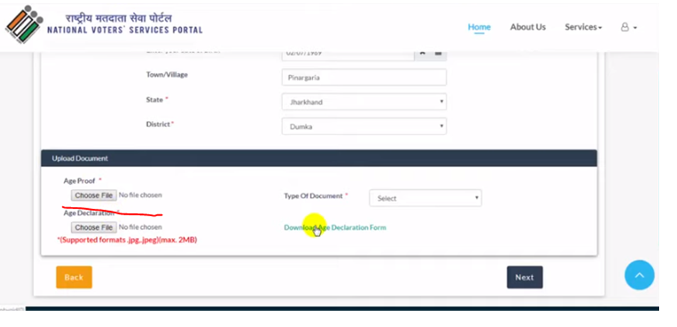 - अब ऐज प्रूफ यानि कि आयु प्रमाण पत्र को अपलोड करें |
