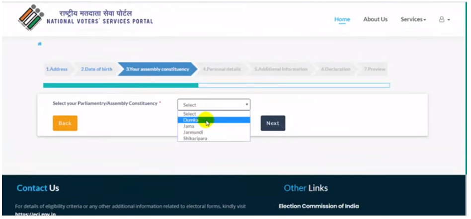 - अपने विधान सभा या संसदीय निर्वाचन-क्षेत्र का चयन करना होगा |
