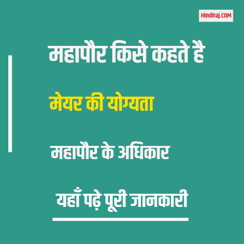 नगर निगम की सभी कार्यसूची मेयर की सहमति से ही सदन में निवेदित की जाती है | इस पोस्ट में आपको महापौर से सम्बंधित सभी जानकारी महापौर किसे कहते है, महापौर का चुनाव कैसे होता है, योग्यता, कार्यकाल, वेतन आदि के बारे में बताया जा रहा है |