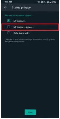 - इनमे से आपको My contacts except के विकल्प पर क्लिक कर देना होगा।