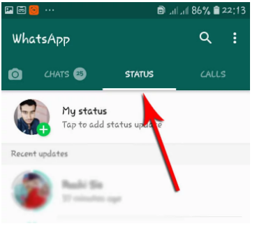 - व्हाट्सएप खोलने के पश्चात आपके स्टेटस के विकल्प पर क्लिक करना होगा।