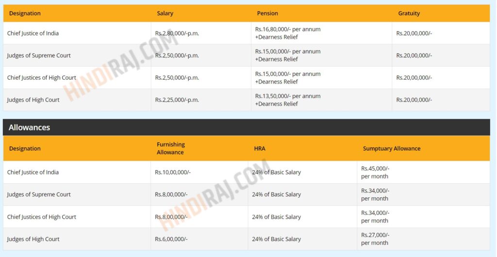 भारत के मुख्य न्यायाधीश का वेतन (Chief Justice of India Salary & Allowances)